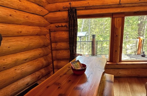 Beautiful 3 bed, 1bath custom log home situated on Crawford Creek. Walking or biking distance to restaurants, shops and the golf course. About 2 km from the beautiful sandy beaches of Crawford Bay. In the winter, the Whitewater Ski hill is about 40 minute (+ scenic ferry ride) away. There is ample cross country skiing on the Kokanee Springs golf course and up Crawford Creek road as well as the spectacular Ainsworth Hot Springs just across the ferry(booking required).