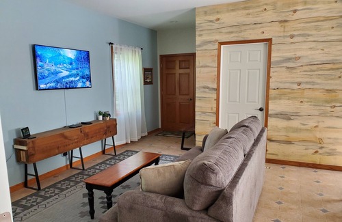 Located just 11 miles from St Maries, ID., Surrounded by huge Cedars, this space is Fully Furnished with New Appliances & Furniture, 50" TV, Bathroom, 2- Queen Beds in Bedroom + Full Sofa Bed. Come enjoy the quiet & peaceful Ahrs Gulch. Massive old growth trees as well as 200+ yr old Cedar stumps decorate the creek bed that runs the length of our 20 Ac property. Close to town with quick access to the wilderness for Off Roading, Hiking, Snowmobiling, Hunting and Fishing. Creek side Fire Pit.