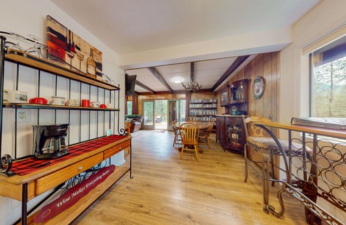 Wake up to the soothing sounds of water and enjoy your morning coffee on the deck overlooking the creek. Inside, the cabin features warm wood interiors, a fully equipped kitchen, and comfy spaces for relaxing after a day of hiking, skiing, or exploring town. Families will love the small playroom designed just for kids—perfect for keeping little ones entertained while adults unwind.