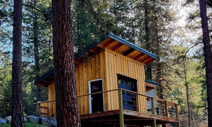 Escape to a secluded cabin in Rice for a peaceful retreat. This cozy 1-bedroom hideaway features a comfortable queen bed, a wood stove and an 8x8 glass garage door that opens so you enjoy the outdoors fully. Guests can unwind in the amazing natural surroundings, go for walks, or go to the river that is 4 miles away. Spring, Summer and Fall in Stevens County offers Farmers Markets, outdoor concerts, local Winery with wine tastings and food. The cabin is fully powered using solar panels which allows sufficient electricity for lighting, charging phones or a laptop. We encourage you to stay a couple of days so you can enjoy all the activities this area has to offer. We hope you enjoy what Creekside Cabin and Rice has to offer.
