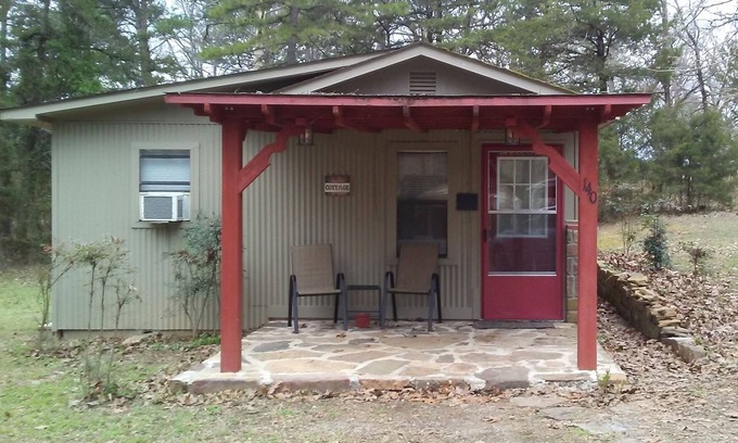 Creekside Cottage Information: Located just outside of the Shoal Bay Recreation Area gate in New Blaine, AR sits this tiny cottage. If you like to fish and enjoy all of the amenities that Shoal Bay has to offer but do not have an RV, this is the place for you. (Please note that the Recreation Area is only fully open March through September. If you come in the off season you can still enter to fish and hike, but the restrooms and swimming area will be closed). The tiny cottage is perfect for couples but can sleep four if the futon is used. This is not a 5 Star Hotel. It’s a cozy, comfortable, and conveniently located cottage that won’t break your budget. Creekside Cottage is a total of 400 square feet but offers a sitting area and kitchenette with coffee pot, microwave, small crock pot and mini fridge. (A larger fridge is located under the picnic pavilion.) There is a TV with DVD player and a selection of movies. Sorry, but no other TV service or WiFi is available at this time. A separate bedroom features a queen size bed with a comfortable 12" memory foam mattress. The rustic decor bathroom includes a large shower. Linens and dishes are provided. Temperature is controlled by a window unit and ceiling fan. A heater is also available for those of you that are cold natured.