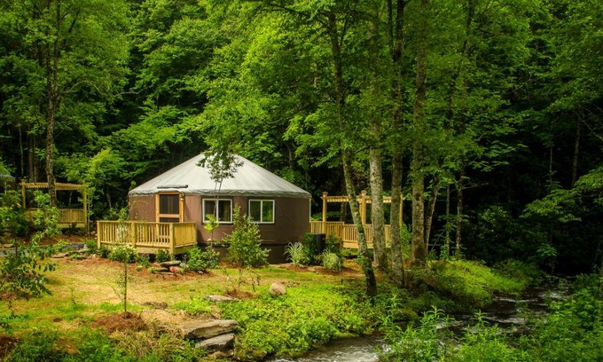 Creekside Cove Luxury Yurt w Hot Tub in Nantahala is located in Topton.