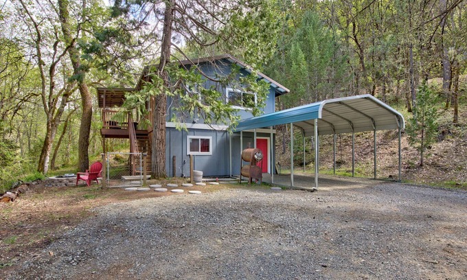 Remodeled. Overlooking seasonal creek. Daily wildlife passing by with private walking trail to swimming hole. Fire pit (seasonal). Pan for gold in the creek. 5 miles to town. One mile to gas, groceries, dispensary, dollar general and coffee stand. 2.5 miles to Sportsman shooting range. Covered Parking. Washer/dryer. 7 miles to Fairgrounds/ Grants Pass Downs horse racing. 15 minutes north to Wildlife Images and 45 minutes south to Medford/Ashland.)