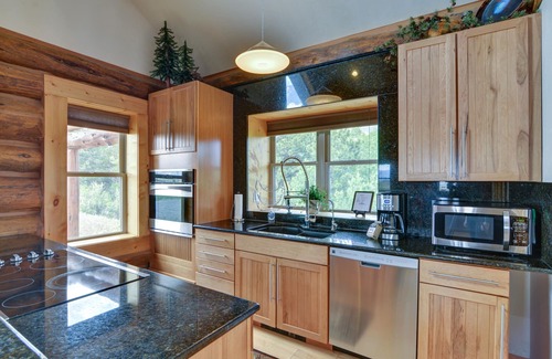 This cabin is a wonderful fit for a family or couples. It has modern amenities and appliances in the kitchen, a wood pellet stove for the winter months, and is stocked with essential supplies (toilet paper, paper towels, linens, soaps, and the kitchen is well stocked with dishes, utensils, pots and pans, etc.) . There are two bedrooms and a loft area which serves as the third sleeping area. The master bedroom has a king-sized Sleep Number bed with an attached full bathroom, complete with a large soaker-tub. The second bedroom has a queen bed and a larger walk-in closet. The loft has two queen beds. There is another full bathroom on the main level. The cabin sleeps 8.
