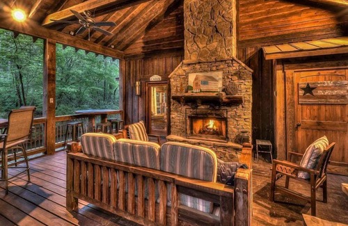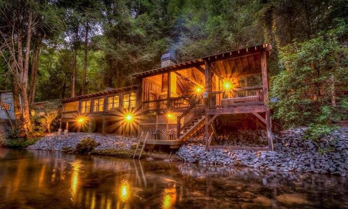 Is your ideal North Georgia cabin rental surrounded by nature in a beautiful, secluded wooded setting, or so close to a stream that you can fish for trout right from the deck? You get both at Creekside R&R, a cozy mountain getaway situated across from a nature conservancy on the banks of Fightingtown Creek, just a short drive from Lake Blue Ridge, Toccoa River adventure activities, Waterfalls, Mercier Orchard, and fabulous shopping and restaurants of downtown Blue Ridge.