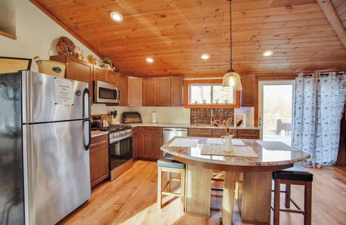 As you step into Creekside Retreat, you'll feel right at home in this beautifully renovated space. Unwind on the large deck under a canopy of stars, perfect for evening gatherings and laughter. Inside, the cozy living room features a gas fireplace and Smart TV, ready for movie nights or binge-watching your favorite shows. The fully stocked kitchen, complete with an island, is ideal for family meals and fun cooking sessions. With two private bedrooms—each featuring a queen-sized bed and air conditioning—and a sleeper sofa in the living room, there’s ample space for everyone to recharge after a day of exploration.