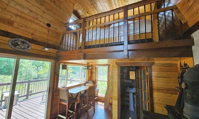 Welcome to this charming treehouse in the quaint village of Cooks Mills. This superb property offers a cozy loft bedroom with a queen sized bed, equipped with window AC, dart board ,mini fridge , microwave, keurig machine , tv , BBQ on deck and firepit .The bathroom is clean and well-maintained. Guests can relax and unwind in this tremendous space, surrounded by nature's beauty. Fall in love with Niagara Falls and enjoy the magic it has to offer.