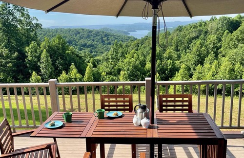 Spacious home with breathtaking views of Hendrick's Creek from every room. Full deck running the length of the house facing the lake. A lower patio area and fire pit for either morning coffee or s'mores in the evening. This is a quiet retreat into nature with all of the amenities of home. Perfect for a multi-family getaway sleeping up to 16 comfortably. For lake access you are with in an easy dive to four marinas (State Dock, Sulphur Creek, Hendrick's Creek, and Holly Creek) and a top rated public golf course.
