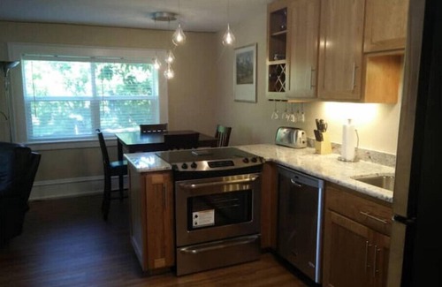 Everything is new and fresh with a relaxed atmosphere. Take advantage of indoor or outdoor living with plenty of privacy, views and greenery. This entire unit has been newly rebuilt with cherry cabinets, granite counter tops, crown molding, new flooring and quality fixtures throughout. It comes complete with a 60 inch TV, DVR, Surround Sound and WIFI. There is a full size washer and dryer in the unit for your own private use. The location provides great privacy in a relaxed country like setting. You have access to your own private patio, complete with a table for six, a gas barbecue, an outdoor ping pong table and an indoor foosball table for your enjoyment!