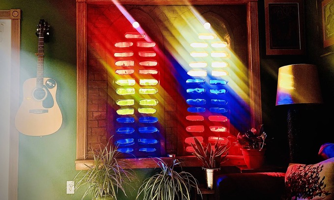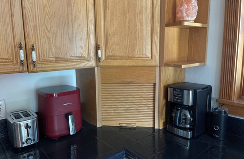 This home is in the town of Crestone, all the town amenities are walking distance from the home. The bottle window shines colorful patterns throughout the room when the sun shines through. The bottle window is designed to look like the Ryman Auditorium famous stained glass windows. The living room is bright and colorful with lots of Rock Art screen prints covering the walls. The kitchen is fully equipped and has seating at the counter top and a large kitchen table. The organic garden is seasonal and completely available for guest to use. The back porch is perfectly overlooking the garden and has a beautiful valley and Mountain View. The other patio is covered. The house has one full bathroom and one bedroom that has a queen bed.The entrance to the home is down the alley and has a parking space for two vehicles.