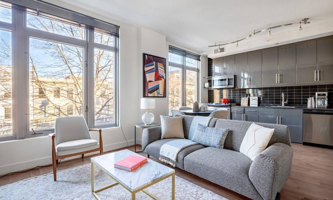 Crisp Logan Circle 1BR w/W/D, Doorman, Gym, nr Metro by Blueground has 1 Bedroom , 1 Bathroom, and max occupancy of 2 people. The minimum rental for this property is 1 nights, but this can change depending on the season you plan on staying. Previous guests have given good rated it, and VRBO labeled it a top-rated Apartment because of the excellent services rendered by the owner or manager of this Apartment, and has consistently provided great experiences for their guests. Most families or guests that use it recommend it to their friends and some of them are repeat guests. Apartment has a friendly neighborhood, and the Logan Circle has interesting places to visit. If you want to learn more about the Apartment in Logan Circle, such as places to visit and things to do nearby, you can check below to learn more.
