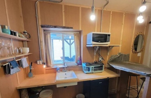 Bachelor with shower and simple appliances to heat a pre-made dish. Coffee maker and coffee on us!