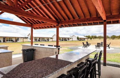AMENITIES - Beautiful views of the Hill Country with covered porches, a pond, outdoor common areas with a gas firepit & seating, common area outdoor pavilion with three gas grills, cornhole, WiFi, Smart TVs in all living & bedrooms.