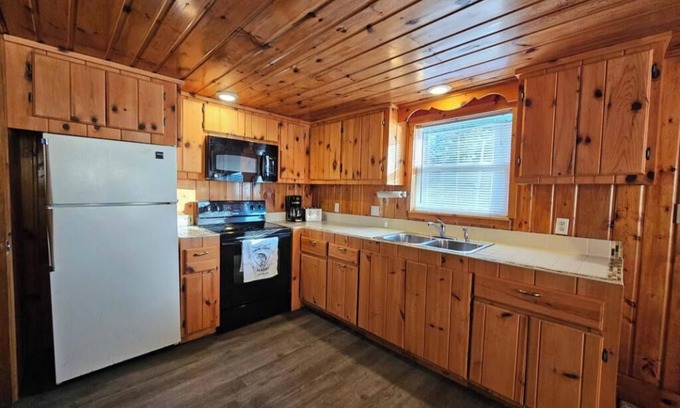 Experience ultimate comfort in our spacious 2-bedroom cabin, each featuring a cozy queen bed. With a 3/4 bathroom, air conditioning, and Dish TV, this cabin offers all the amenities you need for a relaxing getaway. Located just 20 feet from the water, enjoy stunning sunset views right from your doorstep. Perfect for family vacations or a retreat with friends!