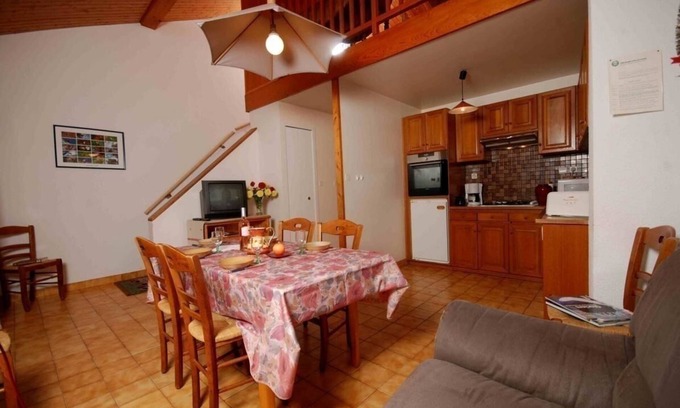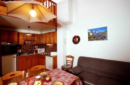 Terraced house including an apartment on the ground floor. Gite on the 1st floor: living room-kitchen, lounge area, WiFi connection, shared washing machine, 1 bedroom (1 double bed), 1 bedroom (1 single bed), bathroom (bath), balcony. 2nd floor: mezzanine (4 single beds). Floor space: 65m² (including attics). Country house located in the heart of a charming little typical Savoyard village. Sunny south-west slope. Quiet area. Good comfort. Beautiful volume of the day room. Warm attic mezzanine. Exposed balcony. Very close to the cable car, shops and services.