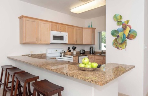 With stunning second-floor views over the lagoon, a screened-in lanai, and access to a newly resurfaced pool and hot tub, this home offers a tranquil and convenient island escape for up to four guests.