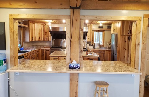 The Lodge has many places to gather - the great room, the game room, the library, the dining room, the wrap around deck, and of course the kitchen. The kitchen is our fan favorite feature - absolutely amazing with lots of space, huge stove and a very fast commercial dishwasher. The kitchen has roll-up shutters to provide separation, or leave it open to the dining room for a more open engaged feel. There's also a BBQ and Traeger smoker on the deck and a firepit for roasting hotdogs or marshmellows.
