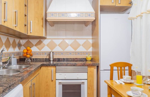 In the vitroceramic independent kitchen, refrigerator, microwave, oven, freezer, dishes/cutlery, kitchen utensils, coffee machine and toaster are provided.