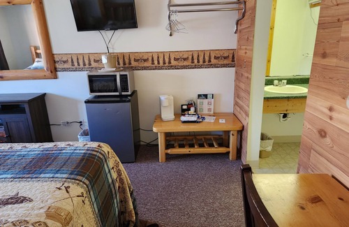 Experience the uniqueness of this tiny mountain town and easy access to all the activities within the Ohiopyle State Park. The Ohiopyle Suites is just steps away from all of the food, drinks, rafting, hiking and biking Ohiopyle State Park has to offer. Clean and cozy in downtown Ohiopyle. This first level studio unit features 2 queen beds, 1 private bath, plus mini fridge, microwave, k-cup coffee pot, WiFi, Cable TV & air. Just right for up to 4 persons.
