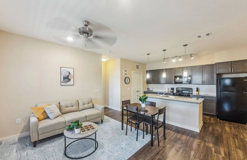 Gourmet Kitchen: Love to cook? This modern kitchen is equipped with everything you need to whip up your favorite meals. From a full-size fridge, oven, stove, microwave, and dishwasher to a coffee maker and toaster oven, you’ll feel right at home.
