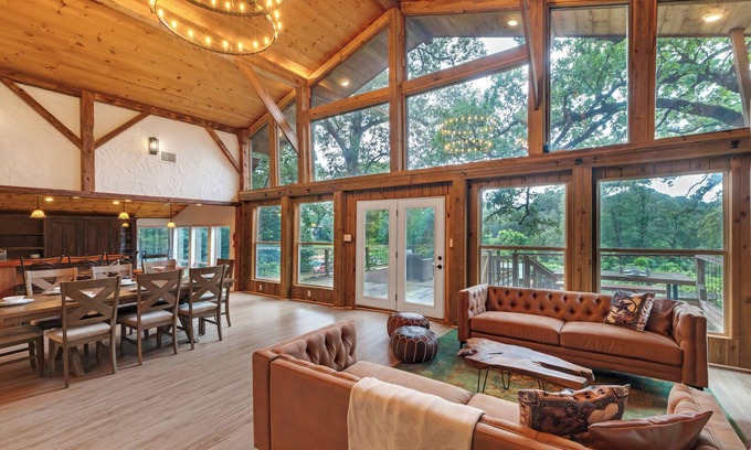 Escape to our custom cabin on 8 private acres in Tomball, TX! Enjoy peaceful views, private parking, and access to a scenic meadow bordering Spring Creek. The master suite features a king bed and spa-style bathroom with a deep tub, walk-in shower, jets, and rain shower. Upstairs, a cozy loft offers 2 queen beds, a twin, and a pull-out twin—perfect for families or groups. With 2.5 bathrooms and great views from our 2nd floor balcony, this is your perfect getaway.