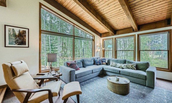 As you approach this modern mountain cabin in Keystone, Colorado, you can't help but feel a sense of tranquility wash over you. The rustic exterior with modern touches sets the tone for a cozy and comfortable stay, making it the perfect retreat for families and friends looking to escape the hustle and bustle of daily life. Step inside to find three inviting bedrooms, each designed with new furniture and bedding to ensure a restful night's sleep. The spacious living area boasts plenty of windows that frame the stunning surrounding views, while a large couch invites you to sink in and unwind.