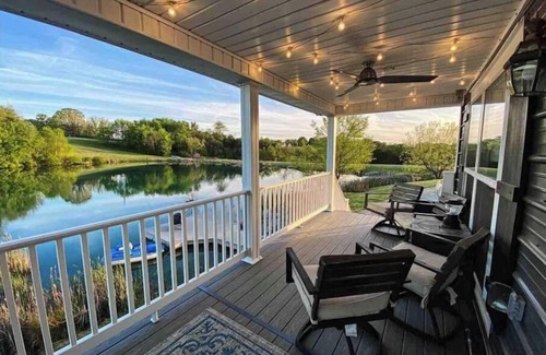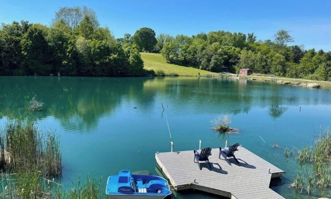 A private fishing OASIS on 23 acres in Kentucky 2 miles from Lake Cumberland! Custom built guest house with a private gated entrance, beautiful private fishing pond, fishing poles, custom Trex dock, paddle boat, fishing boat, 3 adult kayaks, 1 kids kayak. Gather around our Fire pit and enjoy the perfect vacation!