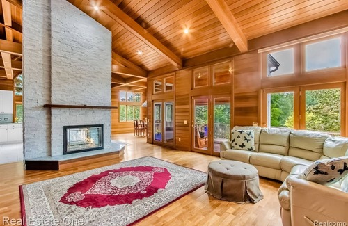 This impressive three-story home will be just the perfect place to bring the whole family for an unforgettable vacation to Metamora, MI! This custom craftsman home sits on 30 spectacular wooded acres with towering pines, flowering fruit trees, and a huge garden area. If there is a feature that makes this home unique is the private, three-acre spring-fed swimming area available for you and your guests. The house sits back by itself in a very private atmosphere where you can enjoy the beauty of nature. Walking trails are around the property and you can walk from the property to Metamora Hadley State Park. Many trails can be easily groomed for cross-country skiing, hiking, biking, and horseback riding. Some of the local attractions you can find within a short drive include Sutherland Nature Sanctuary, Ortonville Recreation Area, Oakwood Lake Township Park, Lapeer Country Club, downtown Lapeer, downtown Oxford, Pine Knob Ski Resort, Mt. Holly Ski & Snowboard Resort, and Alpine Valley.