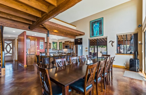 The beauty of this elaborate home in Laclede enhances the views of the Pend Oreille River. Everything from the exquisite woodwork throughout the house to the granite kitchen countertops to the cozy, radiant-heated floors will elevate your Sandpoint vacation. This home has room to cook big meals after days at the beach, while the comfortable loft is the perfect place to wake up with sunlight pouring through the large windows. There is also a separate guesthouse with three bedrooms, one bathroom, a second full kitchen, and a fun-filled game room in the garage with a dartboard and foosball, making it perfect for larger families. Outdoors, you'll also find a six-person hot tub and a firepit for those cool summer nights.