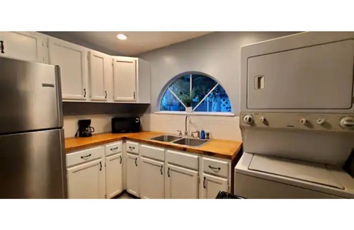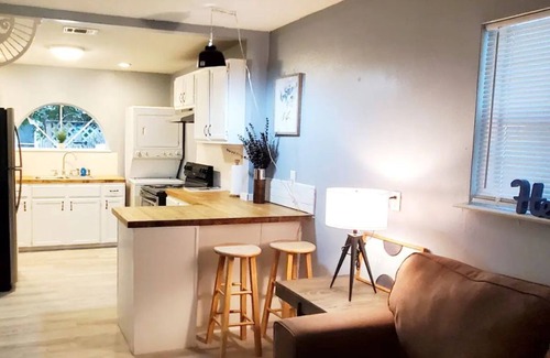 The Blue Angel (Unit B) - Keep it simple at this peaceful and centrally located place. This cozy 1 bed, 1 bath home is surprisingly spacious and is sure to meet your needs during your vacation (or staycation). It has a private entrance, full kitchen, full bath, den, queen bed, washer and dryer, and private patio. Free Wi-Fi, smart TVs, and central heating and air will make your stay very pleasurable.