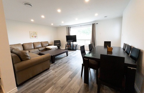 Property is independent with huge backyard with patio, bbq, gazebo and fire-pit. Kitchen is equipped with utensils, dishes, toaster, griller, dishwasher, microwave, coffee maker, fridge