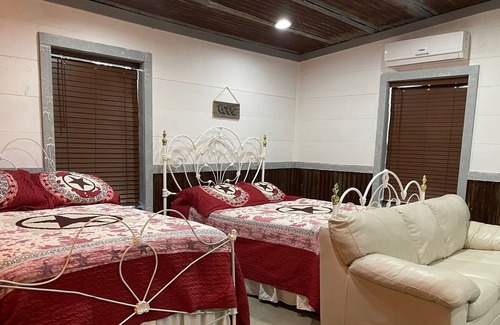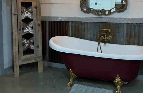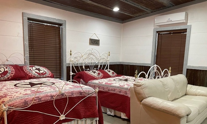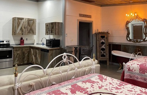 Enjoy a romantic getaway at Painted Lakes Ranch and stay in this cute one room cabin with a comfy bed and clawfoot tub. Painted Lakes Ranch is located near Graham and Possum Kingdom Lake on a large property, approximately 100 acres. There are 2 lakes within walking distance with a fishing dock. Bring your non motorized float or boat and enjoy the pond/lake, or take the pedal boat out! Enjoy fishing, feed the ducks and kick back and relax at the fire pit.