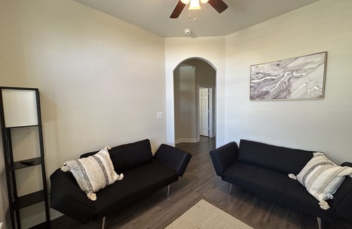 Cozy and comfortable small house, with all the amenities you need for a short or long stay. Just a short drive away from Sugar Land, Richmond, and Katy. Need to get into the city? Easy access to Westpark Tollway I-10 access is close by. This home features 2 beds and a convertible bed and can sleep up to 5 comfortably (up to 7 with air mattress). Private garage parking with private entrance and small front and side yard space, so feel free to bring your furry friends !