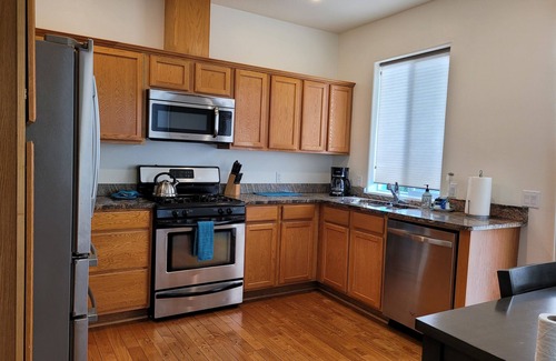 The house is centrally located in a small neighborhood close to shopping as well as beaches and hiking trails. It is comfortable and tastefully furnished with a more modern look, has full size stainless appliances, and a well stocked kitchen. It also has a gas fireplace and fully fenced backyard. All bedrooms are upstairs. All vehicles must fit and park on the property.