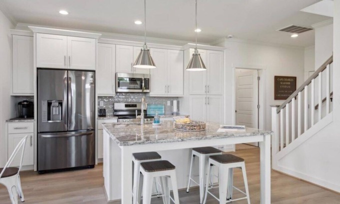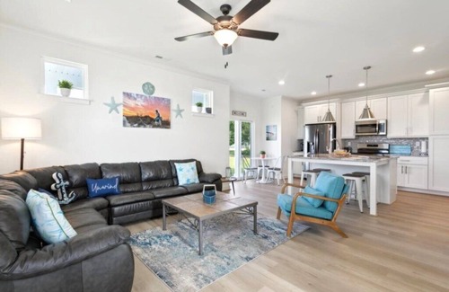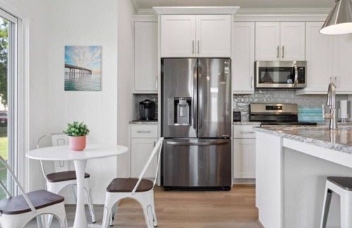 The cutest cottage awaits you in the newest community in Cape Charles! This home features 3 bedrooms 2.5 bathrooms with first floor primary bedroom suite. This is an open concept living room, dining area and fully equipped kitchen. The second level includes a surprise second living area. This is perfect for familes with children who can have their own space (the kids will love the foosball table), or an area to unwind, read a book and enjoy some down time. There are 2 additiional bedrooms and the couch in the upstairs living area is a pull out sofa. The full upstairs bath has a double sink and a bathtub. An added bonus is the large outdoor shower to rinse off after a day on the beach. The driveway accommodates multiple cars and recreational vehicles.