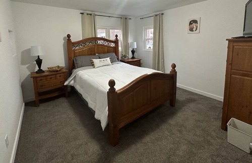 The home is private and in a quiet area. A family friendly home with 3 bedrooms and 1 bathroom, a fully stocked kitchen for all your cooking needs, a comfortable living room with TV/roku, a dining room and seating area for hanging out. The largest bedroom has a Casper queen sized mattress and TV with Roku. The middle room has 2 twin beds that can accommodate adults comfortably. The 3rd bedroom has a full sized bed with a TV/roku setup. There is also a stowaway crib for your infant needs. Linens and towels are provided along with basic cleaning items during your stay. For stays over 5 days ONLY, access to the washer and dryer is available. We are local and able to help out with any immediate needs.