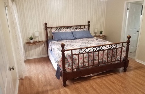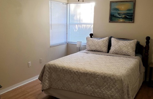 This is a 3 bed 2 bath home nestled on a quiet street just a short walk away from the beach. Easy access to beach, downtown Melbourne and the Eau Gallie Arts district makes this a great home base for your Florida vacation. Enjoy the sounds of our tropical water feature while you relax with friends & family after a day in the Florida sunshine. We are also just 1 hour from the Orlando International Airport.