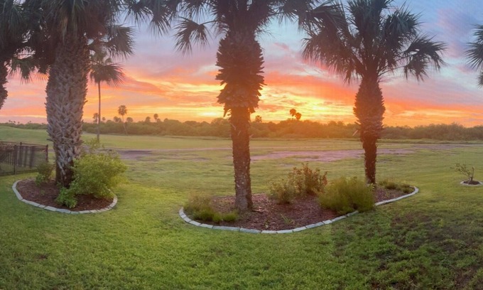 This 3-bedroom, 2-bathroom home pet friendly is situated on the 17th fairway of a golf course. Master bedroom has a king bed and a master bathroom . Second bedroom has a Queen bed . The third bedroom has a Queen bed . The den has a sofa sleeper . It features a screened-in back porch with views of the wildlife corridor and stunning sunsets. The yard is beautifully landscaped with mature palm trees. Inside, you'll find an open floor plan . All bedroom's have smart TVs for stream Located in the prestigious South Padre Island Golf Community, amenities include heated pools, an 18-hole golf course, fitness room, owners' clubhouse, and tennis/pickleball courts. The sandy beaches of South Padre Island are just a short drive away. 🏡🌴⛳