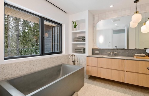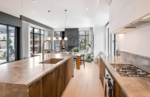 Welcome to Cypress Serenity - a warm modern retreat with exquisite design details. This 5 bedroom 4200 square foot home sits at the edge of Nicklaus North Golf Course on a quiet cul-de-sac with convenient access to the valley trail. It is truly an all-season home. The beautiful floor-to-ceiling windows and 12-foot ceilings throughout provide an abundance of natural light and beautiful mountain views which include Whistler/Blackcomb and Rainbow mountain. The second-storey open-plan living and main entertainment space is furnished with a mix of soft interiors which include deep sectional sofas, plush area rugs, cosy finishes and sheer drapery. The rich wooden textures and warm natural stone finishes are complimented by the use of natural white oak throughout and a hint of crisp white gives a feeling of comfortable elegance and serenity. The wood-burning Rumford fireplace with custom concrete finish surround is certainly a conversational centrepiece. The open concept kitchen features designer lighting, European touches and modern minimalist details, complete with a spacious separate pantry and luxury appliances including a built-in Liebherr fridge and freezer, built-in Miele espresso machine, oven, steam/convection oven, 5 burner gas range, microwave, dishwasher, blender, wine fridge and more! The stunning honed marble (fiore di Bosco) waterfall island is a favourite gathering spot with seating for 4. The 500 square foot covered outdoor patio acts as an extension of your living space, with doors that can fully open to a beautiful outdoor oasis which includes a custom built-in gas Heston bbq, outdoor fridge and prep station. Enjoy the designer patio sectional and alfresco dining for 8. The cozy gas fireplace and infrared heater will be perfect for those cool summer evenings, or the perfect Apres. An elegant powder room includes the same Fiore di Bosco marble and modern custom wood finishes. The media room has custom burnt Cypress millwork throughout, a 65” smart tv, a wet bar and a second patio all create that perfect spot to watch a movie, hang out with guests or just enjoy the oversized down-filled sofa. The primary suite is tucked away on the upper level, with a private patio and treed views over the valley trail. A romantic feel to the room with sheer curtains, a plush area rug and an upholstered king bed. Frame Smart tv and walk-in closet. The spacious ensuite bathroom is a lovely mix of light stone and flat-cut oak wood finishes. Enjoy the special soaker bathtub, double vanity with grey Caesar stone countertops, and steam shower. The main entry level contains two spacious bedrooms with plenty of closet space; one with a custom double over double bunk bed (sleeps 2 adults or up to 4 kids) and a garden patio as well as a separate full bath and shower. The second bedroom has an upholstered queen-sized bed with an attached ensuite and walk-in shower. As a bonus, there is also a second media room and flex space with a custom rolling barn door style sliding wall and custom millwork throughout – a kids' paradise with a 65-inch smart tv and PlayStation, games and toys. The main home is accessible through the finished two-car garage which connects to the mud room and laundry room. Here, you will find plenty of space for your outdoor clothing, boots, skis and gear. This stunning home includes features such as in-floor radiant heating throughout, air conditioning and humidity control. Smart home features such as wifi, nest, Sonos, and built-in speakers throughout the main entertaining level and patio. After a day of enjoying the wilderness, relax and unwind in the large backyard hot tub. Guests travelling with multiple families or older children will appreciate the separate two-bedroom suite accessed through the garage. This suite is comfortable and complete with two additional queen bedrooms, a shared full bathroom as well as additional laundry. Sit back and enjoy the 50-inch flat-screen complete with Apple TV and Wifi. This open-concept living, dining and kitchen space has a lovely woodland view and the same warm finishes throughout including 10-foot ceilings. Please note that all renters must be over the age of 28 years of age or consist of a family group. The home can accommodate maximum 10 adults + 2 children.Please note that for peak FESTIVE PERIODS, we accept a 7-night rental over Christmas OR New Years Weeks, or a 14-night minimum reservation if the reservation falls over both holidays. Only arrivals/departures on Dec 26/27/28/29th will be considered. If you instant book and the dates do not work, we reserve the right to cancel. Midstay cleans are mandatory on any booking at/over 7 nights.