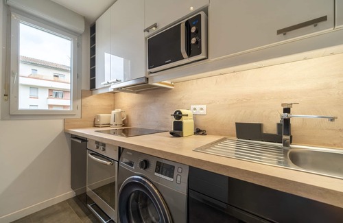 The flat is ideally located in Toulouse, in a very pleasant environment. You'll be close to all the essential shops, as well as boutiques, restaurants, bars, markets, etc.
