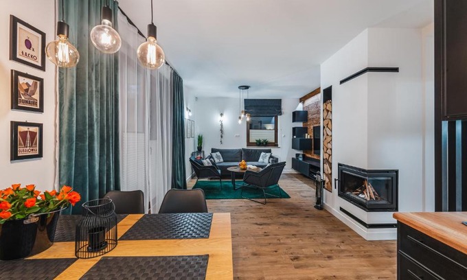 Offering a garden, Czarna Owca offers accommodations in Jaworki. Featuring a restaurant, the property also has an infinity pool, as well as a sauna and a spa facilities. The apartment also provides free Wifi, free private parking, and facilities for disabled guests. Providing a terrace and mountain views, the apartment includes 1 bedroom, a living room, satellite flat-screen TV, an equipped kitchen, and 1 bathroom with a shower. The tiled floors, fireplace, and peaceful vibe add to the ambience of the room. The apartment offers bed linen, towels, and laundry service. For guests with children, the apartment features outdoor play equipment. Skiing and cycling can be enjoyed nearby, while a ski equipment rental service, ski-to-door access and a ski pass sales point, are also available on-site. Niedzica Castle is 16 miles from Czarna Owca, while Treetop Walk is 26 miles away.