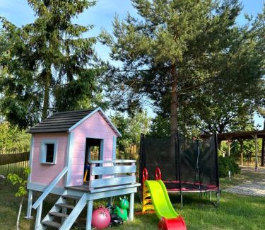 Providing garden views, Dębowy Zakątek in Kazimierz Dolny provides accommodations and a garden. This property offers access to a terrace, free private parking, and free Wifi. The vacation home has private entrance. All units comprise a seating area with a sofa and a fully equipped kitchen with various cooking facilities, including a fridge, a stovetop, and kitchenware. At the vacation home, all units are soundproof. At the vacation home, all units have bed linen and towels. Kazimierz Dolny Castle is 1.9 miles from the vacation home. Radom-Sadkow Airport is 35 miles away.