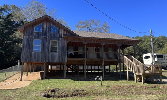 The cabin is situated by the shore of a picturesque Lake D'Arbonne, providing breathtaking views of the glistening water and the lush, verdant landscape that surrounds it. The tranquility of the location is enhanced by the absence of noisy urban distractions, allowing guests to fully immerse themselves in the soothing sounds of nature. But close enough to town to pop into the local grocery store or meander the downtown shops.