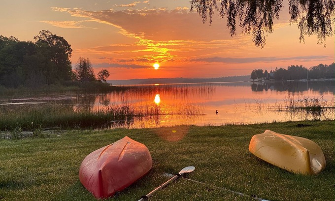 Great family home with two bedrooms down, loft up stairs with 2 full sized beds. There is a spiral staircase that takes you to the loft area and this may be difficult for the elderly or for children. This place has lots of 80's charm all around! Amazing views to see the sunrise, 150 feet of shoreline Lake Access. This property offers a perfect place to enjoy the Drummond Island experience, fire pit, great lake access for kayaks and quiet Area to relax. Everything is provided, all you need to do is head up north!