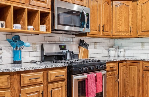 The home is constantly being updated with modern amenities, and we are available 24/7 for any maintenance needs. The second floor offers a master bedroom with a king bed, guest bedroom 1 with a bunk bed, a twin bed, and a trundle, and guest bedroom 2 with a king bed. On the entry floor, you will find a shared guest bedroom with two queen beds and guest bedroom 5 with a queen bed. The lower level living room features a futon and we also provide 2 air mattresses for additional sleeping space.