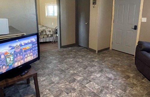 Youve landed in Dakota territory! Come on in and cozy up in our newly remodeled cabin. It has 2 full beds,1 twin bed and living area with new couch and recliner! It is fully stocked with coffee and tea. This cabin has a mini fridge, microwave, coffee maker, air conditioning/heat, a full bathroom, shampoo/conditioner/soap, towels, linens and a smart TV to stream all of your favorite shows and movies! Make sure to like and follow our facebook page for updates and last minute openings! https://www.facebook.com/profile.php?id=61550591985610&mibextid=LQQJ4d