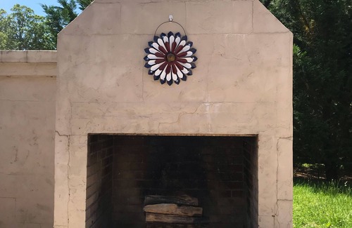 There is a large patio outback with wood-burning chimney and a hot tub. It’s a great space for entertaining.