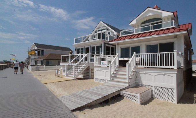DAN18 - This stunning 4 bedroom, 3 full bath home is located right on the beach and boardwalk. Updated and large this luxury home has it all: large rooms, private parking, a large beachfront deck with breathtaking Ocean & beach views, all with every amenity. The prime location is about midway between the amusements and the quieter Inlet, giving it something for everyone. Sunny & bright interior with an open concept design has everything you need for an amazing stay at the beach!