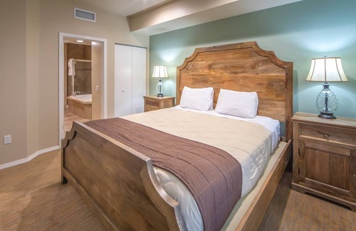 King-size bed and pullout sleeper sofa Queen bed in the guest bedroom Fully equipped kitchen Living and dining areas Full bath with separate tub and shower Fireplace TV in living room and bedroom Washer and dryer Private patio/balcony Complimentary Wi-Fi