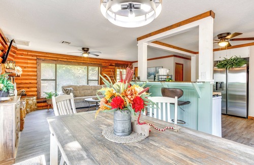 Indulge in a relaxing, nature-fulled Oklahoma escape at this Davis vacation rental! The 3-bedroom, 2-bath cabin features a well-equipped kitchen and a serene, tree-lined location close to Turner Falls and the Chickasaw National Recreation Area. Spend the day exploring trails, lakes, and waterfalls, then fire up the grill for a family BBQ or roast s'mores over the fire pit!